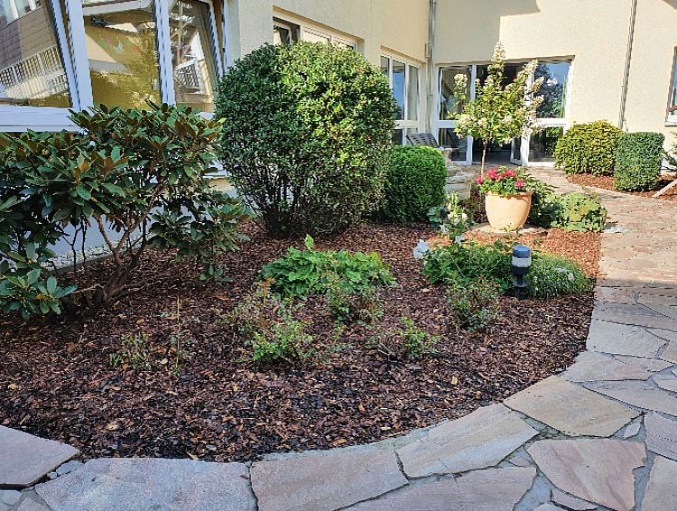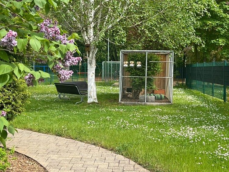 Im großen Garten befinden sich ein Tier-gehege sowie ein Obst- und ein Kräuter-garten, um die sich unsere Bewohner selbst kümmern.